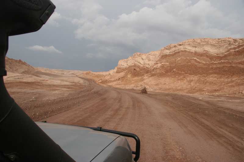 2440m above sea level, this sleepy, laid back town in the middle of the driest desert in the world, the Atacama desert, San Pedro de Atacama is the tourist hangout of Northern Chile. It is an oasis of small adobe houses, has a pleasant tree lined plaza and a lovely 17th century church as well as unreliable electricity and water supplies. Our first night there was spent in a fairly noisy campsite with dirty showers and toilets so the following morning we moved to a lovely guesthouse with clean hot showers which kindly let us camp in their car park. The next couple of days were spent sorting out our trip to Bolivia which was to follow San Pedro, stocking up on water (40 litres on the roof and another 10 drinking litres in the car), petrol (a full 95 litre tank and 40 on the roof) and food (plenty). We also managed to squeeze in a trip to Valle de la Luna (Valley of the moon - Latin American call every place where flood and wind have left oddly shaped polychrome desert landforms this name) a popular attraction from San Pedro...