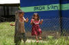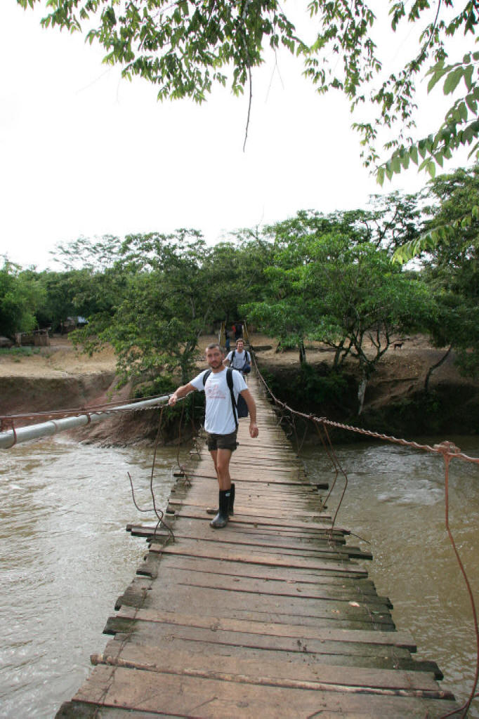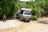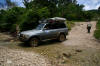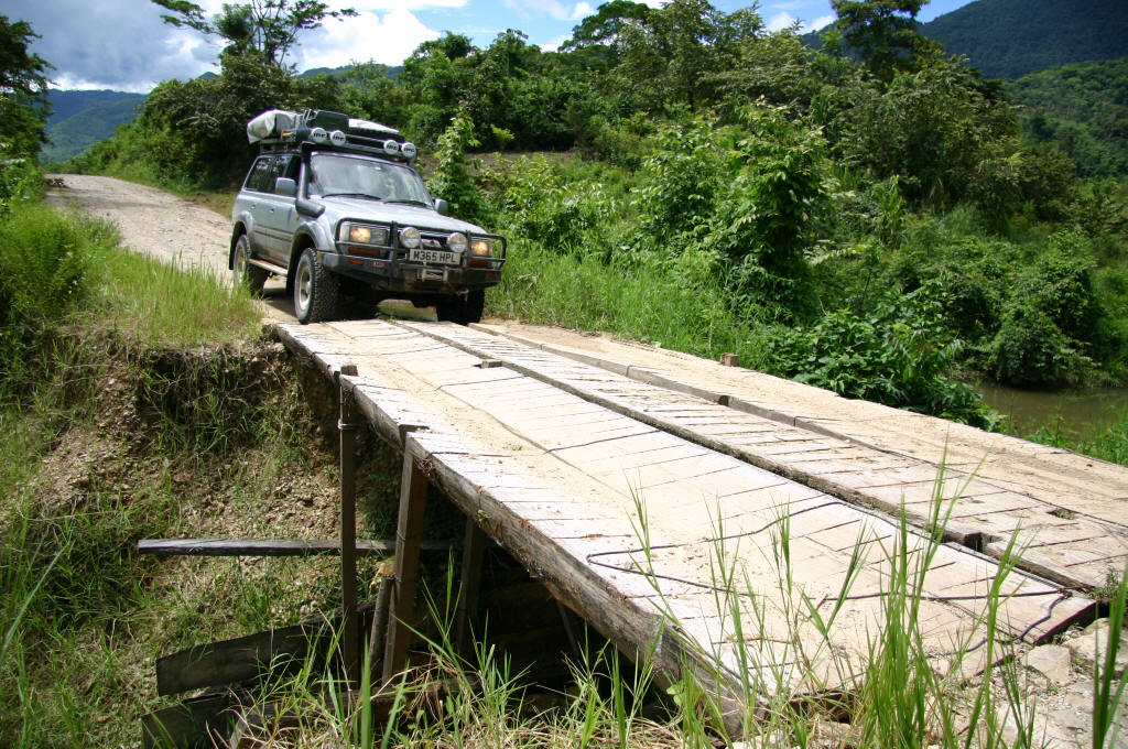 The road was terrible. We averaged 20kmh and made it in just over six hours. Not bad considering this was a 'seasonal road' and we were two weeks from the end of the season. This was our first taste of real off-roading and despite being thrown around the whole way, we loved it! Safe in the knowledge that our combined gadgetry of sat phone and gps would save us if we got stranded, the occasional deep puddle and ominous crunch from under the car simply added to the excitement. The road passed by remote villages where women and children came out to stare at our strange vehicle with the steering wheel on the wrong side. Children were particularly fascinated and within seconds of us appearing, there would be dozens of them running circles around the car. These indigenous people believe photos take away a piece of their soul and so hide at the sight of a camera, so pictures were tricky, but certain scenes will remain permanently in our minds. For example, turning one sharp corner we were suddenly confronted with a hundred men slowly walking towards us, all carrying large machetes. Returning to their homes from clearing some fields, somewhat nervous smiles from us were returned with a mixture of nods, whistles and blank stares. The Lacedonian jungle area is also home to the left-wing guerrila army, the Zapatistas, who are strongly opposed to the Government and fight to improve the living standards of indigenous peoples in the area. Despite a bloody uprising 10 years ago, the situation has now stabilised but parts of the countryside remain tense and the Zapatistas have a stronghold over most of the are. Throughout our drive in the area we saw grafitti on the sides of buildings and houses where zapatista villages show their support and their opposition to the government...