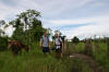 A last military checkpoint, and we arrived at Emiliano Zapata, the gateway village to Laguna Miramar. After meeting the president of the town who permits tourists to the lake, we were shown our hut for the night. A broken night's sleep due to a voilently loud thunderstorm amplified by corrugated tiled roof, we were up at dawn to begin the two and a half hour walk to the lake. After much faffing around deciding what to take - camping gear, water, food and cooking equipment we put our welly boots and rucksacks on and followed our guide. It was soon clear this was going to be no walk in the park. August is rainy season and the previous night's storm worsened the path.... from start to finish, the journey was a trudge through knee deep mud under a punishing sun. Smiles, jokes and posing for photos was soon replaced by grumbles and then silence. EJ's boots were too big and lifting legs out of deep mud often left the boots behind. Blisters on Hicks' feet took a turn for the worse and we began to wonder whether this two day journey was worth it. We passed by a man on a horse and begged him to collect us the next day with horses for the return journey. In his weakening state, MG was preparing to pay 1000 pesos. The man asked for only 300. We settled on 500.